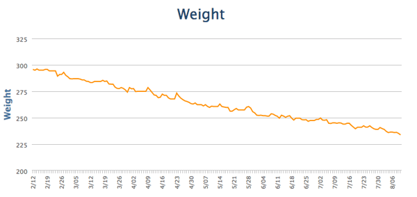 From 313 lbs to 230 lbs, a successful journey that lasted several months.
